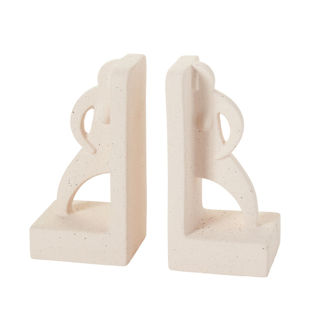 Like two guardians representing the beauty of the female form, these Doppelganger Bookends guard your books with two halves of a full figurine. Made from off-white neutral clay with a sandy, speckled texture, each ceramic sculptural vessel stands on a sturdy platform to keep books upright on either side.