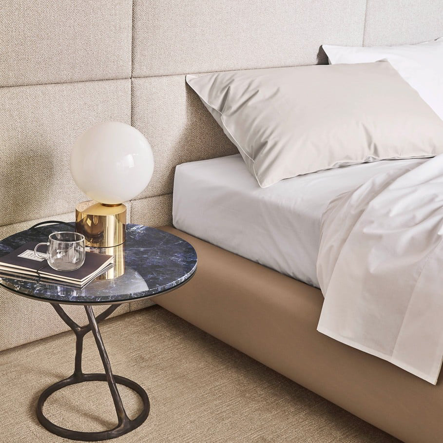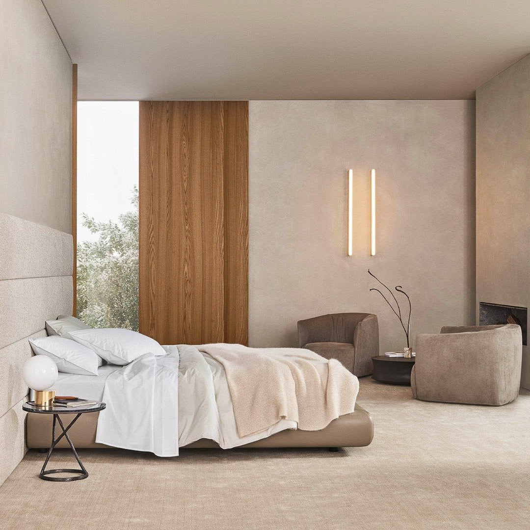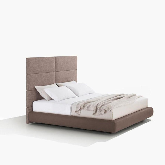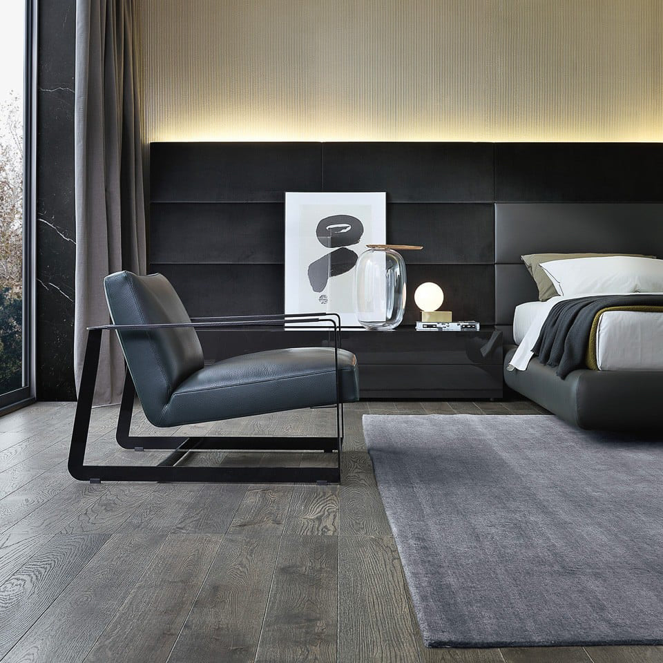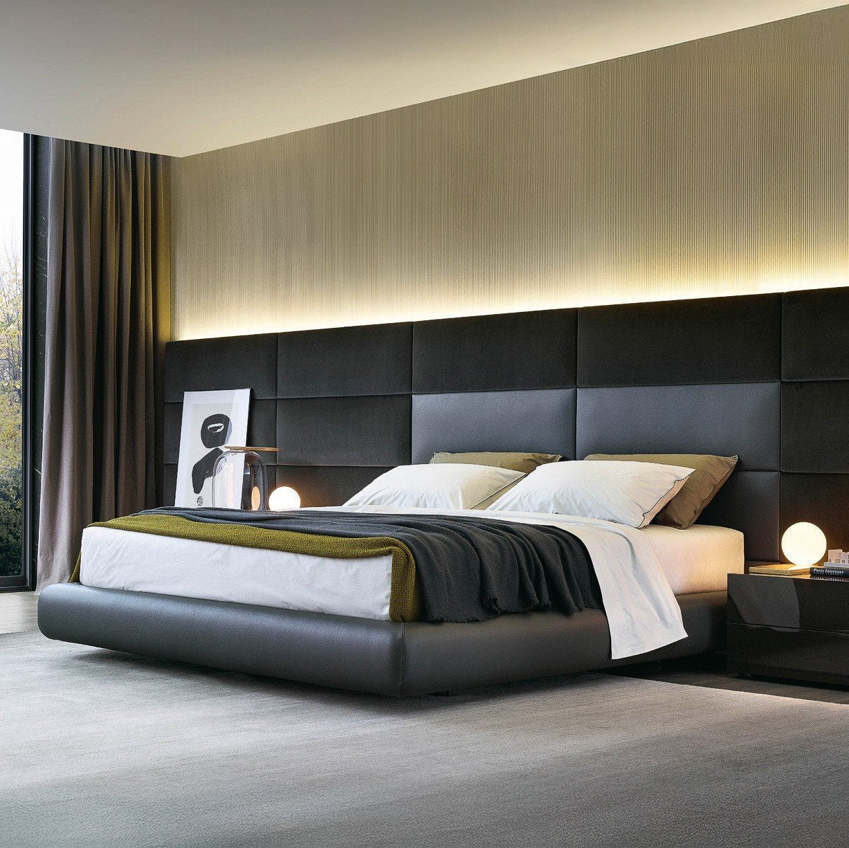 Dream is a bed with a contemporary feel that combines a base with rounded and essential lines with a system of cushioned panels, with which to furnish the sleeping area in an original and personalized way. Ideal both for homes and hotels, the bed is available in three versions: with wall paneling, where the panels, individually upholstered in fabric or leather, act as headboard and boiserie; with a cushioned headboard and without. The Dream bed is available with a fixed, anatomical, or folding bed base featuring a storage compartment. The optional pair of rollers makes it even more comfortable.