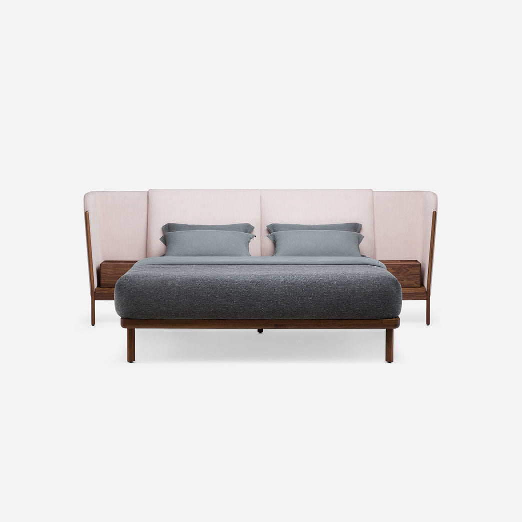 Dubois is a bed system crafted in premium solid hardwood and luxurious fabrics.