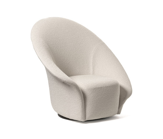 Lilia is a swivel armchair (360°), with a soft, functional shape which seems to have originated naturally from a flower that has just blossomed. The backrest softly envelopes the seat, and the asymmetry of the two armrests gives the design an original and contemporary touch. A project that gives hints of stylish design thanks to the cover, which is available in a range of fabrics and leathers with the option of choosing two colors: one for the external part of the backrest and another for the internal part of the armchair and for the seat.
