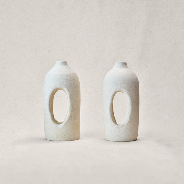 Form meets function meets fiction. Keep your literature in order and show off your modernist chops. Purposefully and versatile, these bookends double as bud vases for any raw ceramic shelf, mantlepiece, or end table.