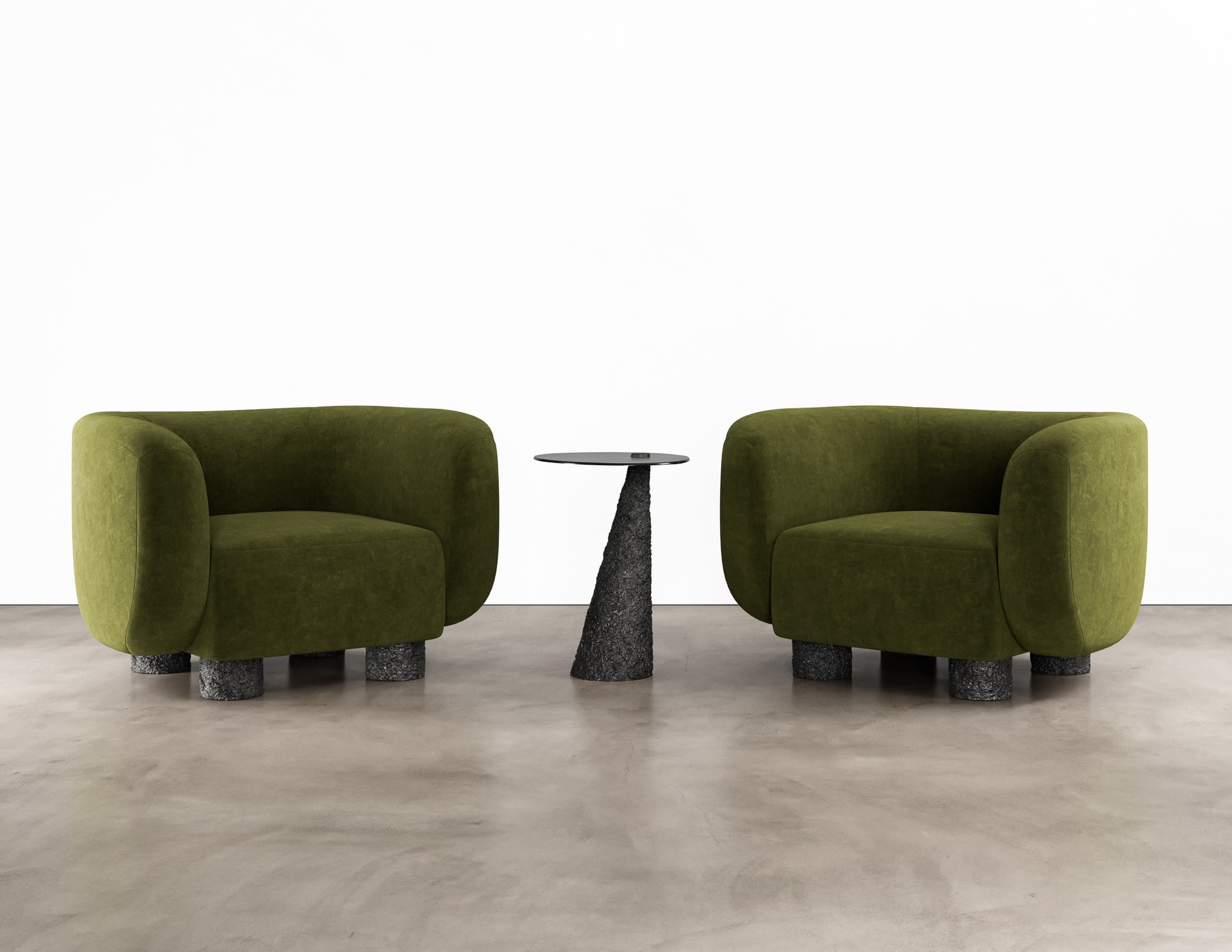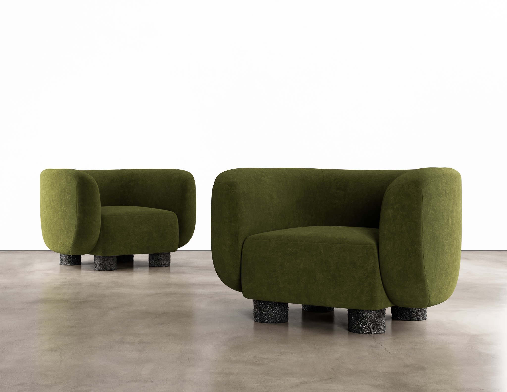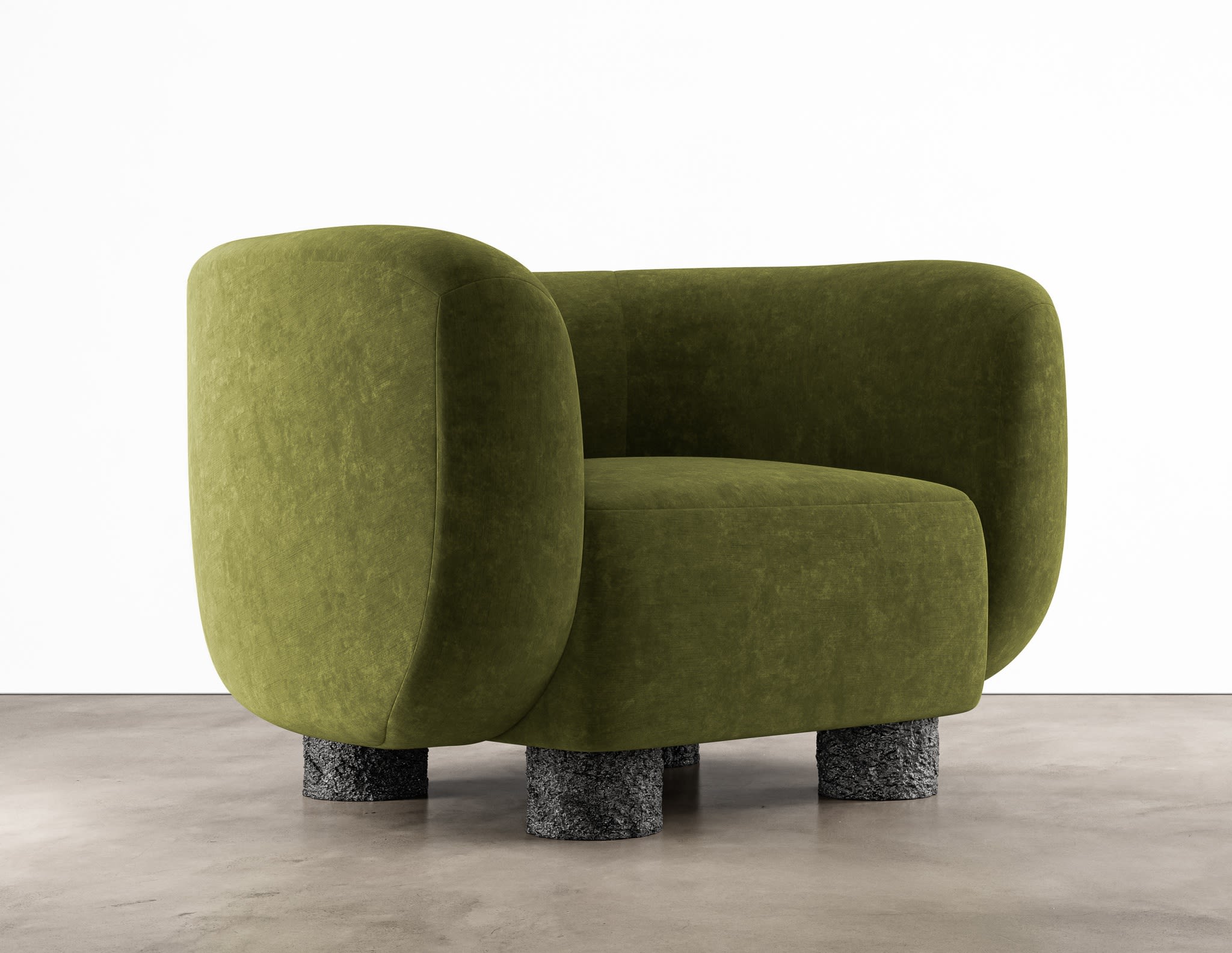 The Basalto Chair by Aguirre Design features bold, sculptural forms that balance comfort and artistry. Its deep, plush, upholstered seat rests on cast bronze legs that add a textured, industrial edge. This striking piece brings a modern, tactile presence to any space, merging high-quality materials with minimalist design. Perfect for those looking to make a statement, the Basalto Chair is a testament to Aguirre Design's commitment to both craftsmanship and bespoke elegance.