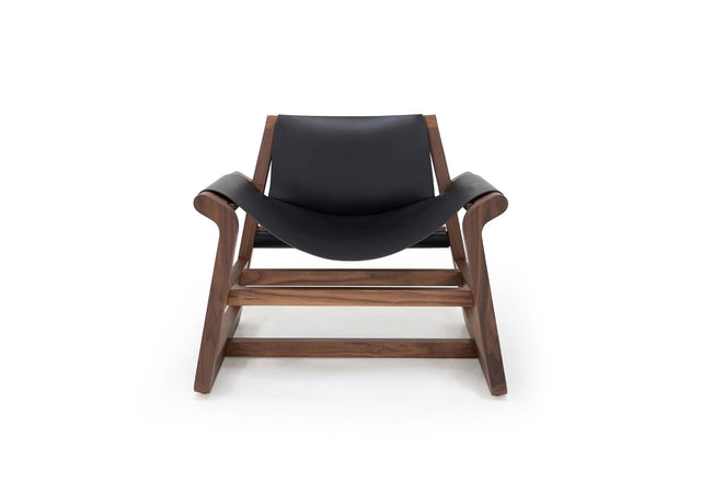 The luxurious leather sling to the Oakley Chair family, featuring a suspended seat in a sculptural hardwood frame.