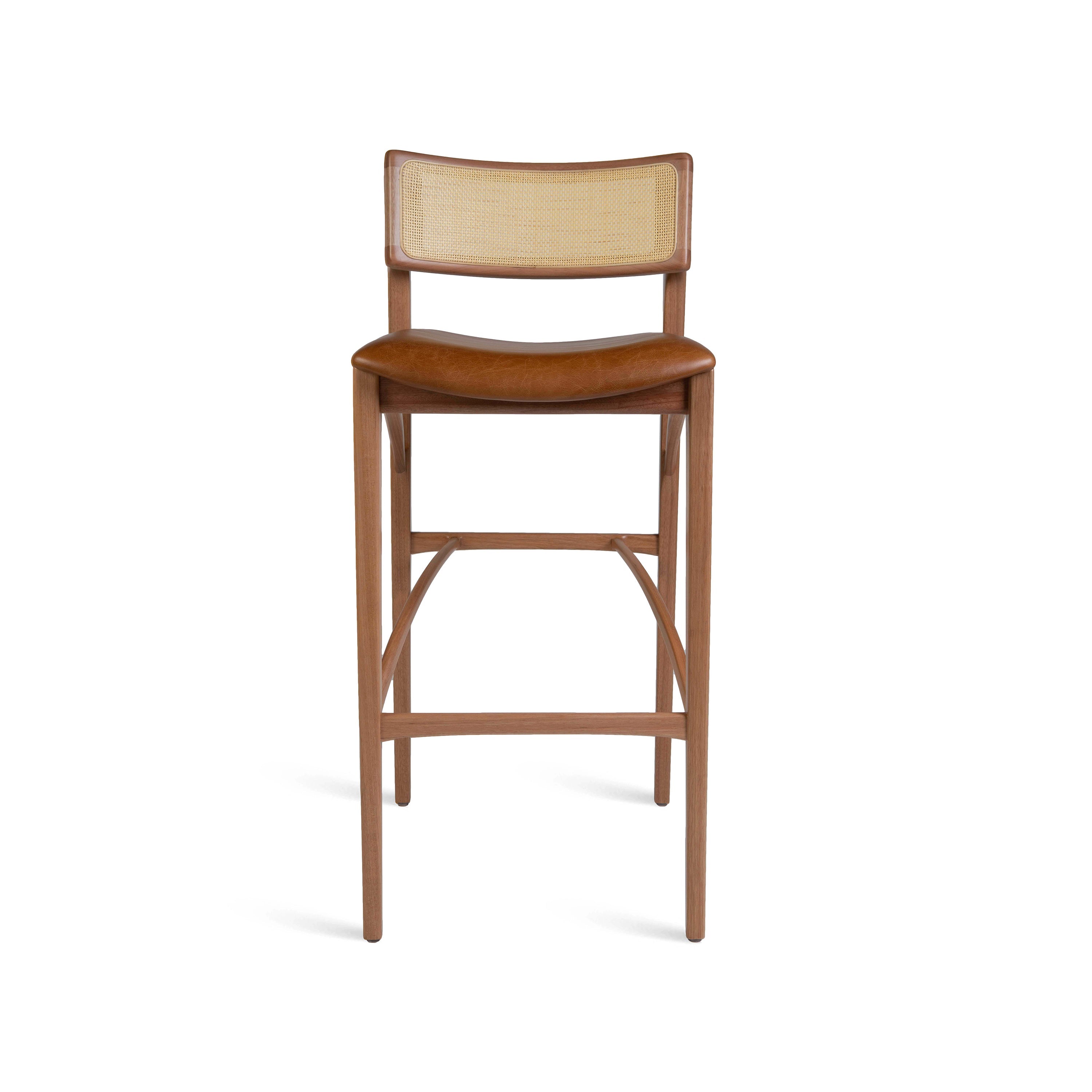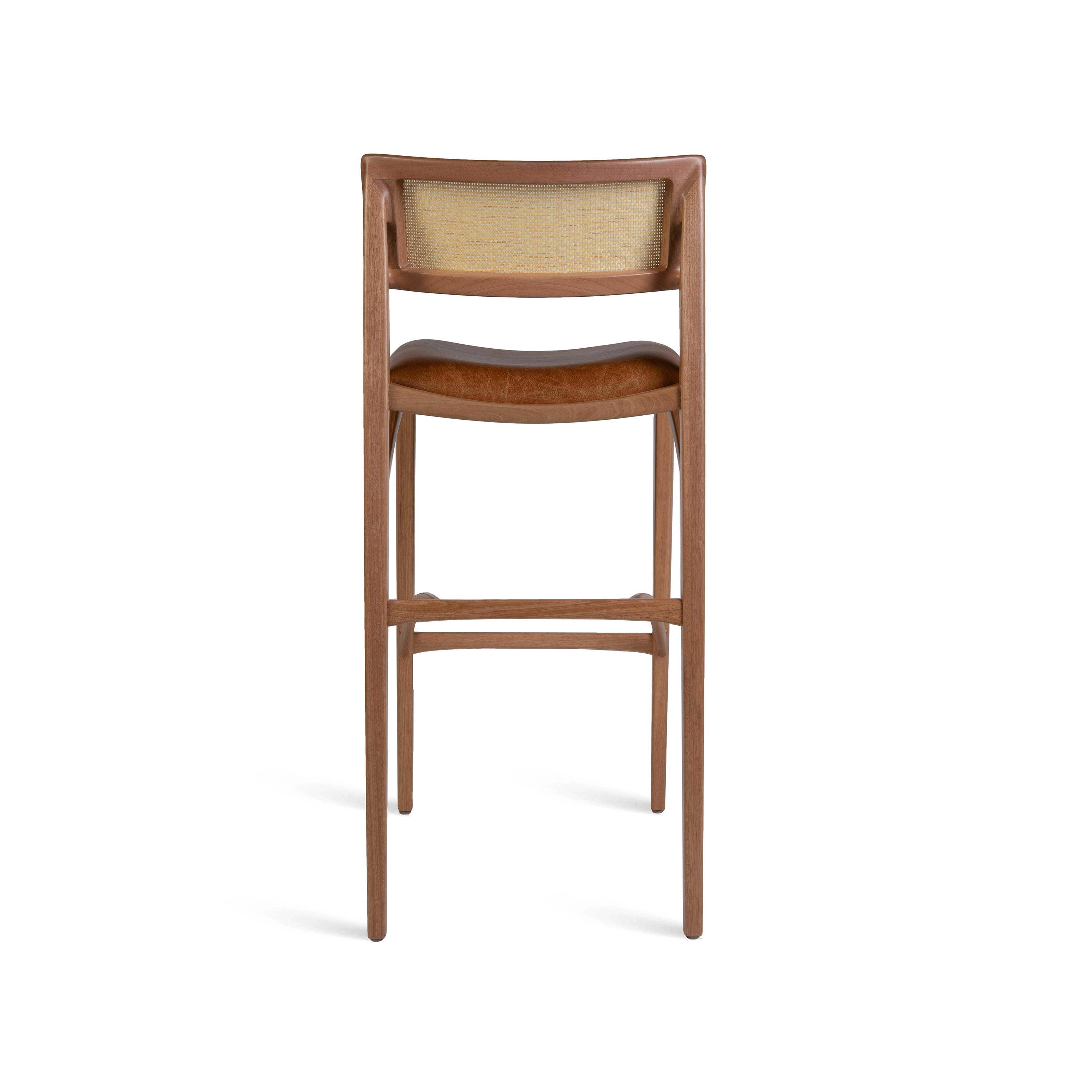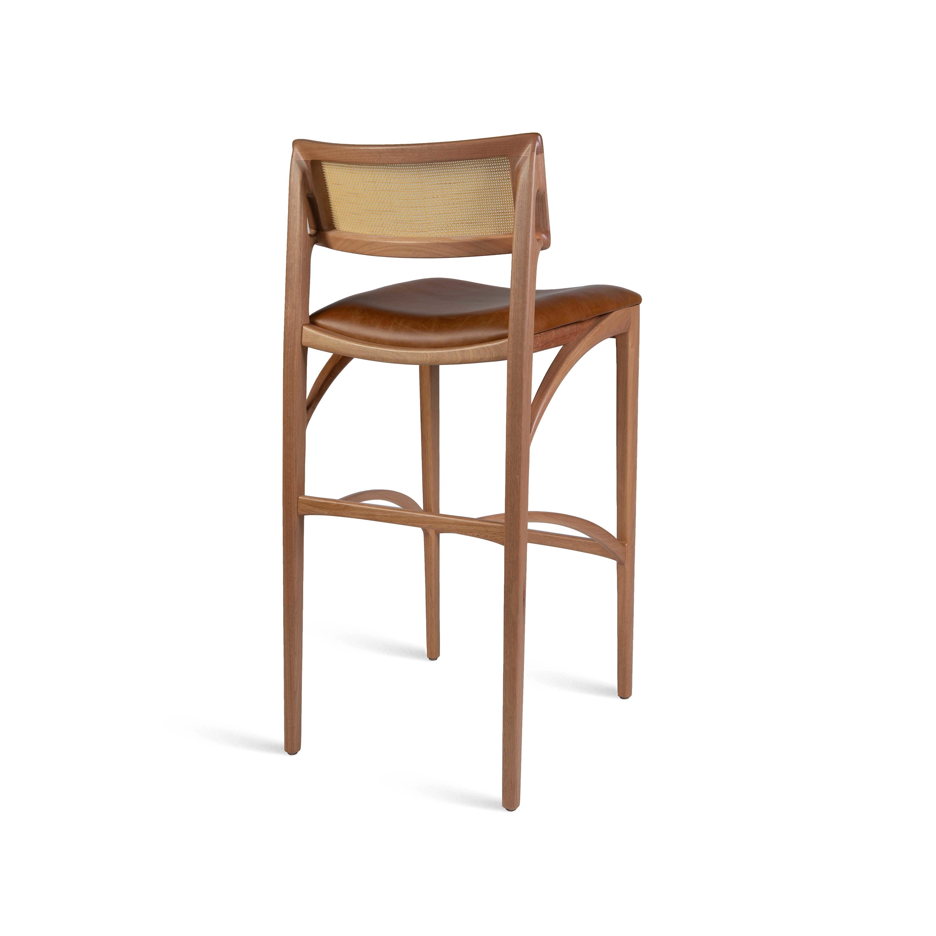 A latticed backrest sprouts from branch-like back legs, this sturdy stool displays a beautiful wood frame with delivate curves.