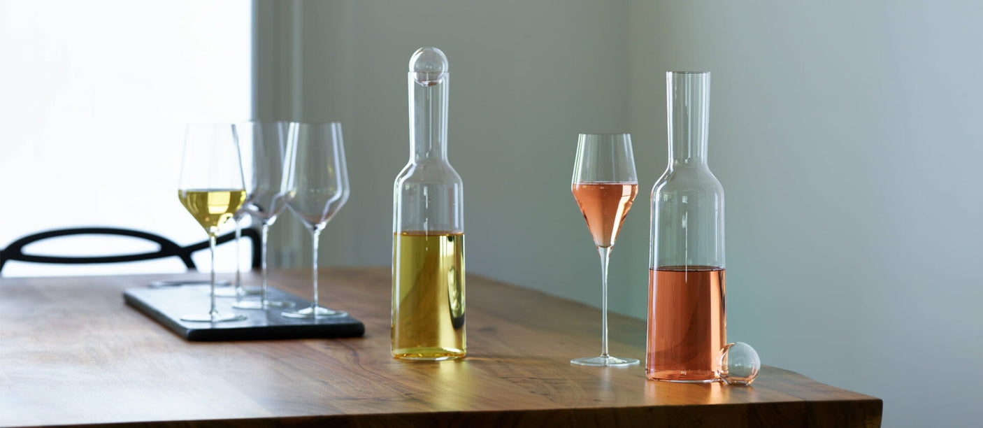 The carafe 67 skillfully combines a slim silhouette with a longer neck and is the perfect addition to the existing range. Equally suitable for wine and water as well as non-alcoholic beverages, this carafe, like all our products, is characterized by being perfectly balanced. The longer neck makes pouring easier at the table. Due to the tapering top and the narrow neck, it guarantees gentle decanting and is therefore also ideal for sparkling wine.