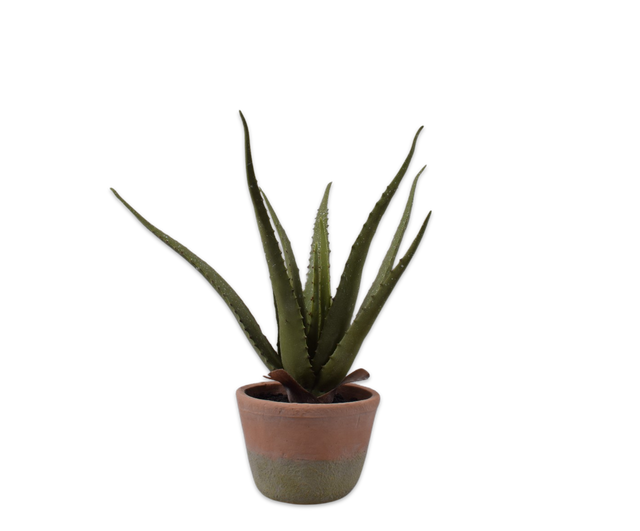 The plants are stiff and rough, consisting mainly of a rosette of large, thick, fleshy leaves. The leaves are usually quite pointed with thorned edges. The color varies from grey to bright green. The flowers of the plants are small and tubular and are located on single or branching leafless stems. Aloe vera is also used for its medicinal properties attributed to the plant for centuries. The gel-like juice in the thick leaves can be used as a first aid for burns.